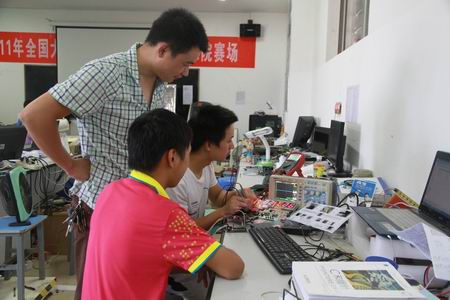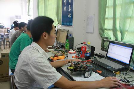 由于大赛是在开学初举行,选拔出来的26名学生在胡邦南、赵自鹏等老师的带领下放弃了暑假休息时间,不畏酷暑,夜以继日地紧张工作。电子信息工程专业大二学生伍益君告诉记者,尽管自己很想家,但为了大赛仍坚守在实验室里。他希望下次回家的时候,能带着荣誉见父母。来自汽车电子专业的大一学生肖仁冬、王衍明则表示,非常珍惜这次赛前培训机会,不仅让他们学到了更多专业知识,更懂得了如何与同伴协同创新,共同进步。