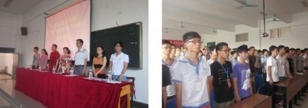 典礼开始,全体起立齐唱国歌。随后,分党校培训班班长盛状汇报了本期培训班理论学习和主题实践活动情况。来自数控S2012-4班的优秀学员代表唐伟同学发言,他讲述了自己在分党校学习过程中领悟到的心得体会,并谈到如何成为一名真正的党员等话题。