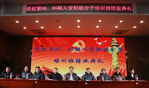 本网讯 1月5日中午,党校第68、69期入党积极分子培训班结业典礼在我校图书馆多功能报告厅举行。学校党委副书记陈超、党校副校长陈方、各二级学院党支部书记等及培训班全体成员参加了本次结业典礼。典礼由培训班班主任李蕙主持。