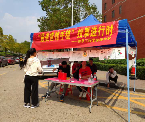 本网讯 3月20日,信息工程学院“最美雷锋手稿”活动投票环节在学生公寓前坪举行,800余名学生为他们心目中“最美的雷锋手稿”投出了宝贵的一票。
