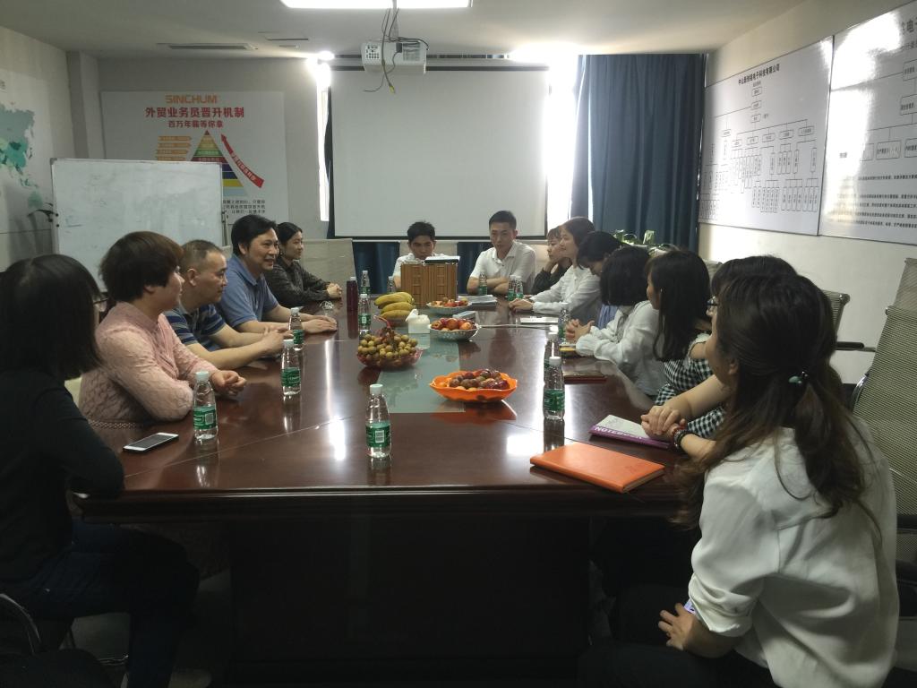 商务贸易学院老师与中山新创铭电子科技公司顶岗实习学生交流中