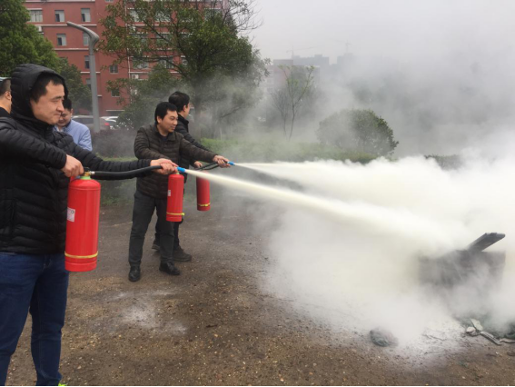随后开展灭火器使用现场教学,使大家切实掌握了灭火器的正确使用方法及自救方法。
