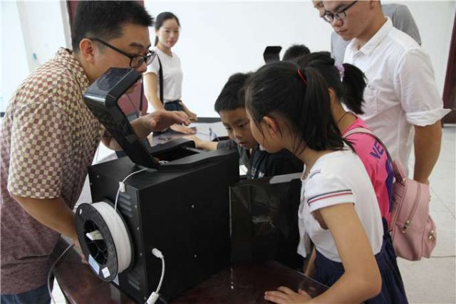 这是由工业职院与岳麓区白鹤社区合作开展的 " 区校共建 3D 打印科普体验 " 活动中的一幕。