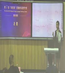 此次大赛由湖南省职成教学会高职英语教学专业委员会、湖南省高等教育学会大学外语专业委员会、上海外语教育出版社联合主办,湖南生物机电职业技术学院承办,共有来自全省14所院校教师团队同台竞技,比赛分为复赛和决赛。比赛中,各参赛队伍角逐激烈,现场教学展示环节和提问环节精彩纷呈,充分展现参赛队伍教师的教学风采和教学能力。在复赛和决赛中,宋思老师以扎实的英语语言功底、精湛的教学技能和现场应变能力赢得了专家评委的一致好评,以复赛和决赛均总分第一的成绩荣获特等奖。