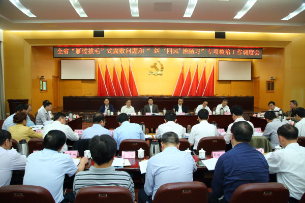 5月12日,省委、省政府召开“雁过拔毛”式腐败问题和“纠‘四风’治陋习”专项整治工作调度会。省委常委、省纪委书记傅奎、副省长戴道晋出席会议并讲话。会上,郴州市等5个市州和省财政厅等9个省直单位在会上汇报了相关工作情况。