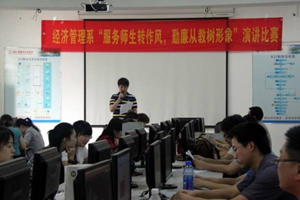 经济管理系“服务师生转作风 勤廉从教树形象”演讲比赛现场 江红霞和李可丁两位老师获一等奖