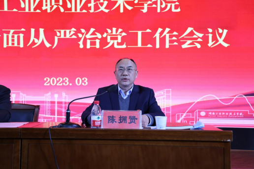 陈拥贤宣读了学校《落实中央八项规定精神专项检查工作方案》。他在主持会议时,就贯彻落实会议精神提出要求。一要提高认识,不断强化理想信念。党员干部要自觉提高政治判断力、政治领悟力、政治执行力;二要贯彻新理念,做好会议精神的传达贯彻。会后,各党总支部、各部门、二级学院要把传达贯彻此次会议精神,同学习习近平新时代中国特色社会主义思想、深入学习贯彻党的二十大精神结合起来,以多种形式组织党员干部、教职工深入学习会议相关内容,做到传达全覆盖。三要完成新任务,统筹推进2023年学校全面从严治党工作各项任务的落实。党员干部要对照“一岗双责”要求,以担当的精神,务实的举措,积极的行动抓好全面从严治党工作各项主体责任的完成,将本次会议精神落到实处。