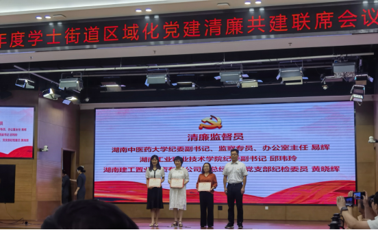 会上,我校等15家共建单位分别与学士街道工委相互认领了2023年度区域化党建+清廉共建项目书。yabocom(中国)官方网站“志愿服务”项目获得了学士街道区域化党建+清廉共建2022年度“优秀共建项目”。我校纪委副书记、纪检监察处处长邱玮玲受聘为清廉监督员,并为其颁发了清廉监督员聘书。湖南湘江新区宣传工作部部长、岳麓区委常委、宣传部长刘雄辉做了讲话,对学士街道与15家单位携手共建表示赞同,要求学士街道与15家单位真正实现组织一线牵、全街一盘棋,党建带廉建、廉建促党建,打造区域发展共同体。