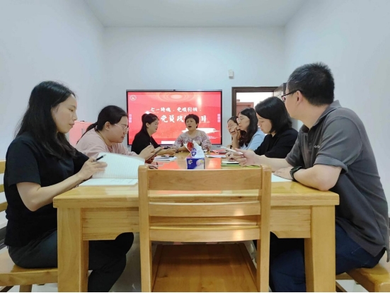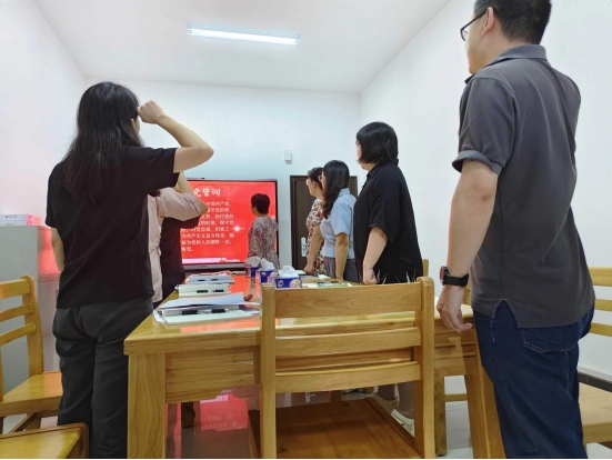 7月2日,行政楼会议室里,纪检监察处党支部党员同志面向鲜艳的党旗,庄严举起右手,重温入党誓词。为庆祝中国共产党成立103周年,纪检监察处党支部精心组织了本次“七一铸魂,党旗引领,共庆党员政治生日”的主题党日活动。