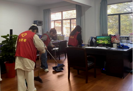 图为志愿者清扫办公室