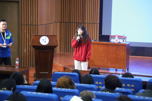 为了增强讲座的互动性和趣味性,杨滨校友还准备了丰富的奖品,通过现场抢答等形式与同学们进行互动,气氛热烈。最后,杨滨校友再次强调了脚踏实地、找准潜力行业并稳定深耕的重要性。他鼓励同学们要惜时如金,抓住每一个可能的机会,不断提升自己,为未来的职业发展打下坚实的基础。
