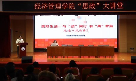 12 月 23日,在1102大学生活动中心,一场别开生面的普法活动热烈开展,经济管理学院的同学们齐聚一堂,深入探寻《民法典》的奥秘,主讲人为我院党总支副书记周敏,参与者涵盖大一、大二各班团支部代表、寝室长以及第 22、23 届团总支学生会全体成员。