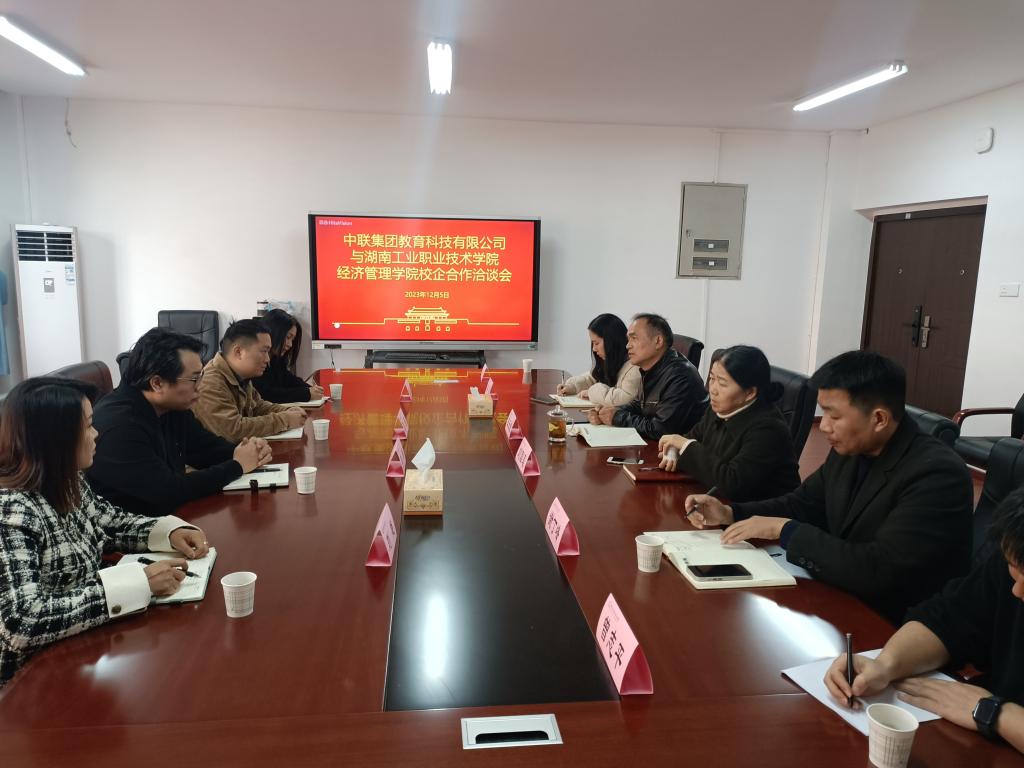 刘国莲院长代表经济管理学院对中联集团教育科技有限公司来我院交流洽谈表示热烈欢迎,介绍了学院的专业建设、师资队伍、技能竞赛等情况,希望能够与中联教育科技公司深度开展校企合作,促进产教融合,助力我院财经专业群“双高计划”建设。