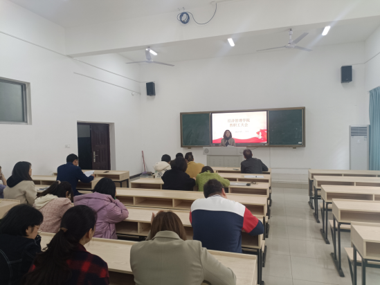 4月25日下午,经济管理学院在5117召开了学院教职工大会暨教学工作会议,学院党政领导、全体教职工参加了会议。会议由学院党总支副书记周敏主持。