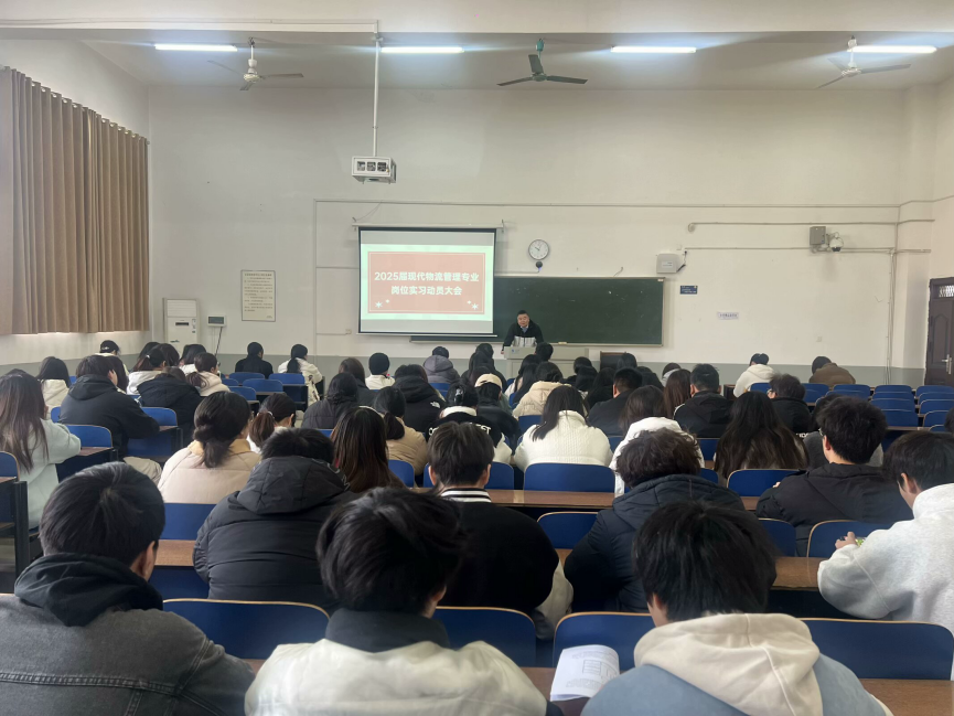 2024年12月18日上午10:00,经济管理学院现代物流管理教研室在2202A教室举办了2025年应届生岗位实习动员大会暨毕业事项说明会。此次大会旨在为即将步入职场的2022级学生提供实习指导和毕业相关事宜的详细说明,确保他们能够安全开展岗位实习活动,并顺利过渡到职业生涯的新阶段。