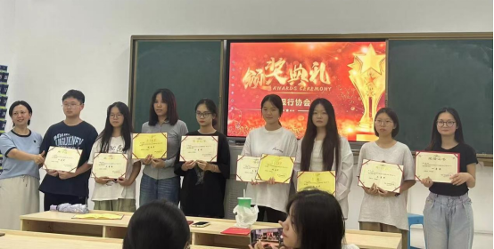随后,指导老师刘涓、前任会长及副会长为“指尖王者”比赛获奖者的会员颁发奖状,为表彰这些优秀会员的辛勤付出与杰出成就,举行了隆重的颁奖典礼。获奖同学依次上台,他们的脸上洋溢着自豪与喜悦的笑容,这不仅是对他们个人努力的认可,更是对他们未来无限可能的期许。