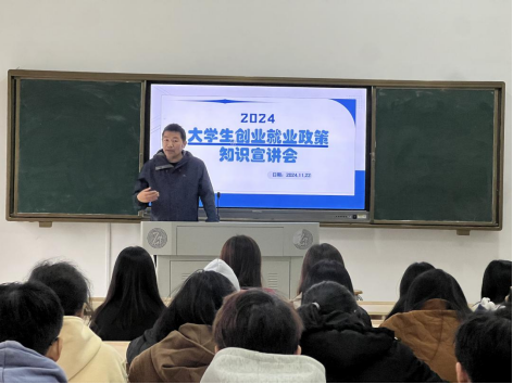 为助力25届物流专业毕业生更好地规划毕业去向,明确就业方向,我院于2024年11月22日在5116教室成功召开现代物流管理专业就业创业政策宣讲会。会议由教学副院长谢丁峰、现代物流管理教研室主任任志、就业干事谭宇主讲,物流专业全体毕业生参加了此次会议。
