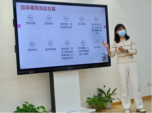 谢奇为大家介绍了团体辅导的优势和团体辅导活动方案策划内容、活动设计的要求,并以“恋爱沟通”为主题展开此次团体辅导活动分享会。她通过“大树与松鼠”、“我说你画”等互动环节带领大家进行团体“破冰”活动,以消除彼此间拘束感,并简单介绍了团体规则,讲解团体的动力来自于团体成员彼此的投入、信任、尊重和接纳。愉悦轻松的氛围拉进了参与者之间的距离,为团辅的有效开展创造了良好的环境。