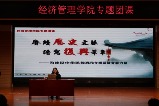 在文化传承发展座谈会上,习近平总书记强调指出:“中国文化源远流长,中华文明博大精深。只有全面深入了解中华文明的历史,才能更有效地推动中华优秀传统文化创造性转化、创新性发展,更有力地推进中国特色社会主义文化建设,建设中华民族现代文明。”为深入学习习近平总书记重要讲话精神,我院于12月5日下午13点在1102开展了“赓续历史文脉,谱写复兴华章”的专题团课,此次团课的主讲人是经济管理学院党总支副书记周敏,授课对象为我院全体学生干部以及入团积极分子。