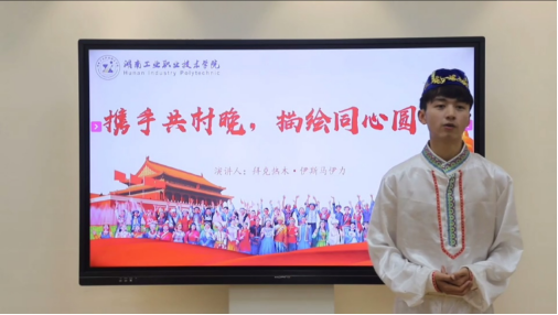 比赛现场,选手们紧紧围绕主题,结合自身实际,以青春之我,续团结之花,阐述了新时代家乡的新变化,进一步彰显了青年大学生的责任和担任、情怀和使命。来自新疆吐鲁番的拜克热木·伊斯马伊力为我们讲述了中国乡村文化IP——村晚,他从美食、美景、民俗、文化等角度切入,呈现了一场热闹、幸福、奋进的多民族合家欢盛宴,展现了新疆各族人民昂扬向上的精神风貌。
