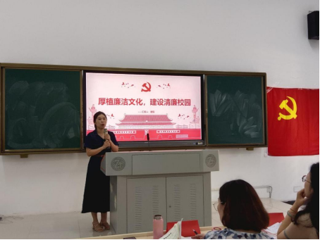 戴鹏以《清风润心,与廉同心》为题,说到在今后的工作中,要将崇德尚廉的正能量内化与心、外化于行,夯实廉洁从教的思想基础。