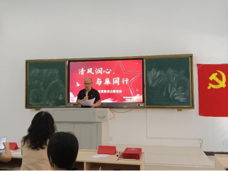 为深入学习贯彻党的二十大精神及习近平总书记关于党风廉政建设的重要论述及重要工作部署要求,深入推进我院党风廉政建设,2023年9月19日下午,经济管理学院党总支在博文楼5117举行"清风润心,与廉同行"主题宣讲比赛,比赛由党总支书记杨学文主持,学院所有党员现场观赛。