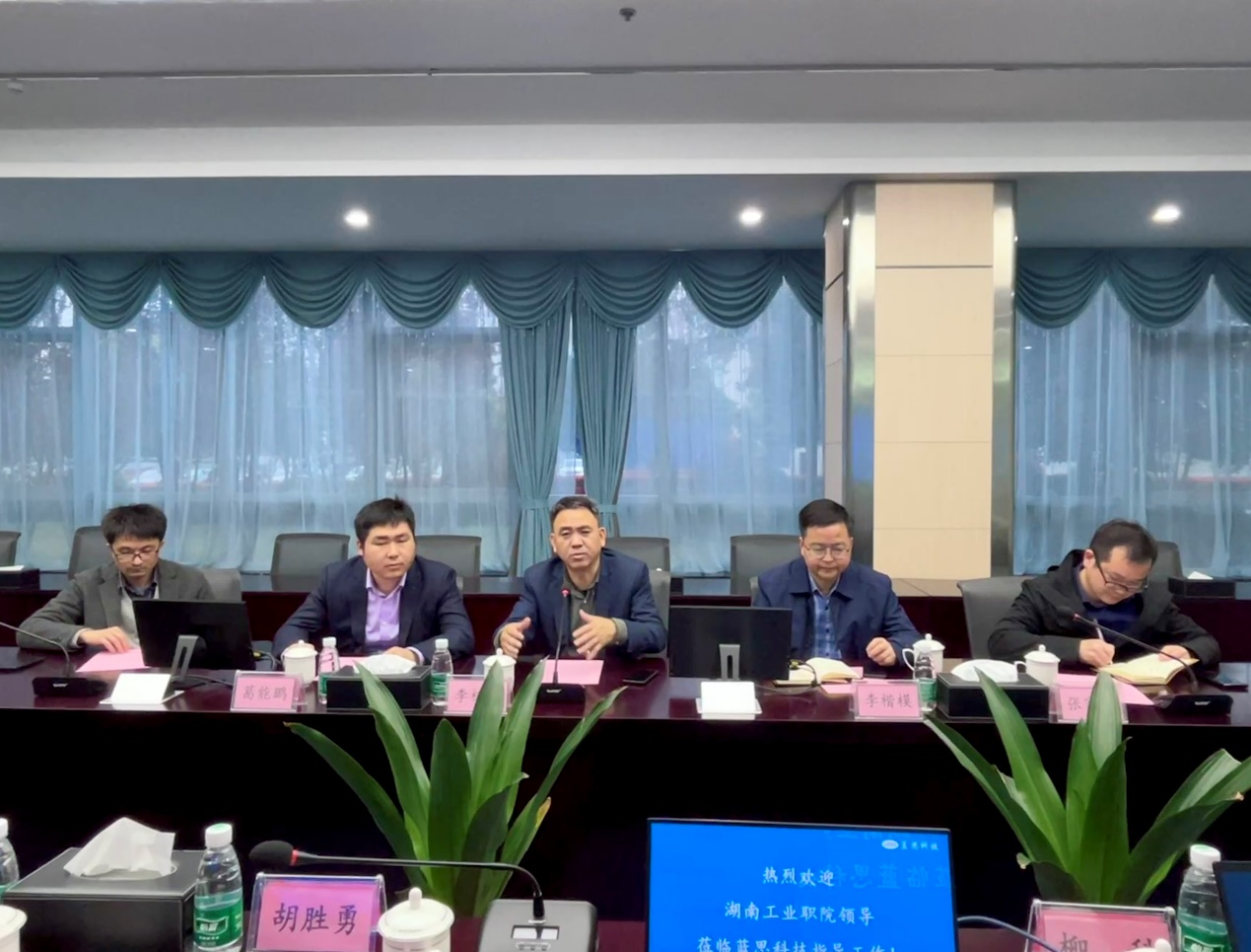 蓝思科技集团副总经理左都凯在交流中介绍,蓝思科技作为湖南知名企业,通过开设雏鹰订单式培养方式,将为我校毕业生提供更多的就业岗位,承担起更多的社会责任。同时,左都凯指出,蓝思科技在智能制造、数控加工技术以及就业育人等方面与我院还有更大更深的合作空间,期待更深一步的合作。