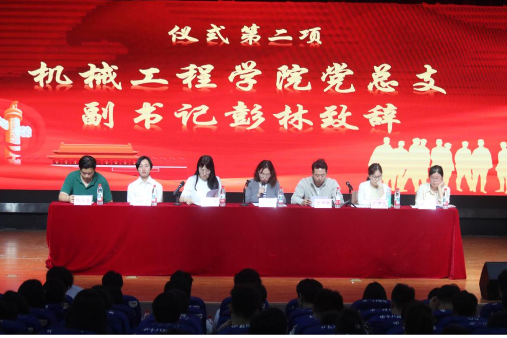 大会在庄严的国歌声中拉开帷幕。首先,机械工程学院党总支副书记彭林致辞,她全面回顾了过去一年团学联合会在学风建设、文体活动、志愿服务等方面的工作成果,对上一届团总支学生会的辛勤付出和优异成绩给予高度肯定。同时,彭林副书记也对新一届团学干部提出了四点期望:一是要坚定理想信念,强化思想引领。二是要提升服务意识,践行初心使命。三是要勇于担当作为,锤炼过硬本领。四是要加强团结协作,凝聚团队力量。她殷切希望团学干部能够接过传承的接力棒,秉承学院的优良传统,为学院的发展注入新的活力和动力。