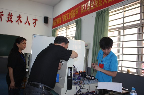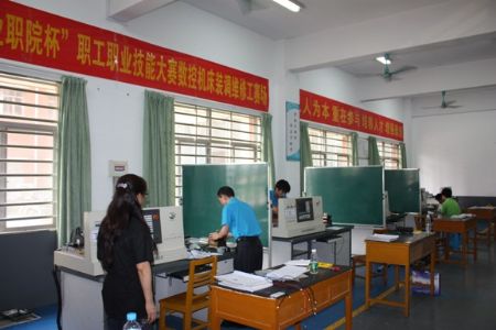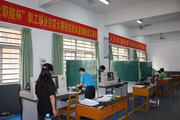 6月19日,湖南省第四届“湖南工业职院杯”职工职业技能大赛在我院举行隆重的开幕仪式。机械工程系数控技术中心承担了数控机床装调维修工竞赛项目。来自全省10个市州的26名选手参加了本项目的角逐。选手必须在6个小时内完成实际操作技能竞赛的各项内容,包括系统连接、参数设置、故障排除、数控机床功能部件装调、数控机床精度检测、零件编程与加工等。