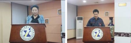裁判员代表湖南化工职院教授尹霞、参赛学生代表屈柯江分别宣誓