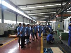 在千山药机学员们参观了加工车间、装配车间和精加工车间,体验了 “6S”管理效果,重点参观了水刀切割、激光切割等先进制造设备。随后进行了座谈会,学员们就机制、数控专业高职人才培养模式、课程建设、技能培养等内容与力资源主管唐闻君女士、研发部门朱经理和精加工车间班长进行了深入的交谈,学员们掌握了千山药机对数控和机械两个专业人才的岗位能力要求、技能等级和人才结构状况。