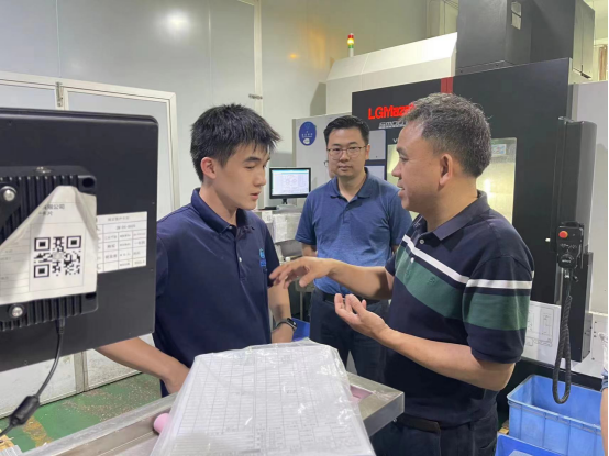 在企业,老师与同学们进行了座谈,了解他们在企业的学习、生活和工作情况,2021级数控专业林菲菲同学表示,在企业见到老师,就像见到自己的亲人一样,感觉非常亲切。深圳市晋铭航空技术股份有限公司总经理杨若岑向学院反馈,公司主要缺高水平技能人才,希望与学院深化合作,未来吸纳更多人才来企业工作。深圳市亿乐文科技有限公司总经理、我院2009届模具设计与制造专业毕业的校友李德金表示,再次见到母校老师特别高兴,感谢母校的培养;母校的学生到我公司实习,我会像亲人一样对待他们,并及时向他们介绍专业的最新的信息yabocom(中国)官方网站;2名在公司实习的2024届毕业生已经协助公司技术人员研发出了一套新的产品,为公司做出了贡献,此次9名2024届在公司实习的毕业生将全部留在公司上班,留存率100%。
