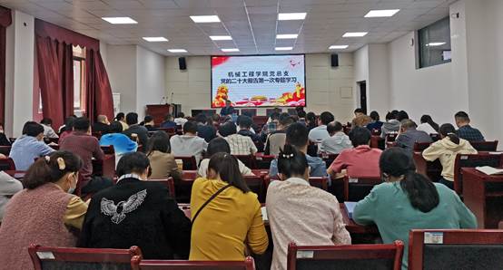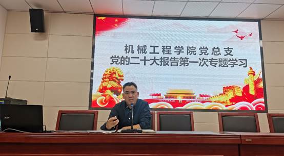 10月25日,为深入学习贯彻党的二十大报告精神,机械工程学院在机械楼8409报告厅举行党的二十大报告第一次专题学习会议,机械工程学院党总支书记李树德主持会议并发言,全院教职工参加会议。