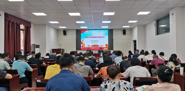 2022年9月20日下午,机械工程学院党总支组织全体教职工在精技楼8409多功能报告厅进行政治理论学习,全院教职工参加会议,学院党总支书记李树德主持会议。