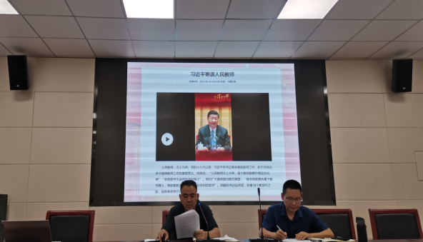会上,全体教职工集中学习了习近平在省部级主要领导干部专题研讨班上的重要讲话精神、习近平总书记关于教师节的相关讲话精神、习近平总书记对人民教师的寄语、习近平总书记重要理论文章《全党必须完整、准确、全面贯彻新发展理念》、习近平向世界职业技术教育发展大会致贺信、湖南省教育厅关于进一步规范职业学校校企合作的通知、《中华人民共和国网络安全法》、《湖南省网络安全和信息化条例》、关于做好2022年国家网络安全宣传周校园日活动的通知等文件精神。