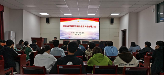 4月12日,学院在机械楼8409室多功能报告厅召开了2021年党建党风廉政建设工作部署会,会议对学院2021年党建、党风廉政建设重点工作任务进行了安排部署,并对在全院开展党史学习教育进行了再动员再部署。大会由学院党总支书记马跃龙主持,全院教职工以及部分学生党员代表参加了大会。
