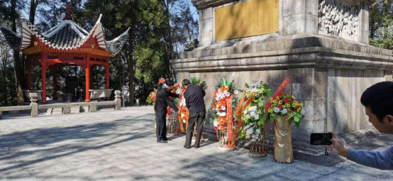在烈士纪念碑前,党员们向革命先烈敬献花篮,在鲜红的党旗前面,大家高举右手,重温入党誓词,感恩革命先辈的无私奉献,进一步坚定理想信念。