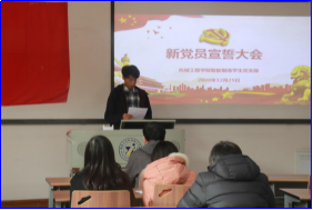12月25日,机械工程学院智能制造学生党支部新党员入党宣誓仪式在机械大楼8508举行。机械工程学院总支书记马跃龙,智能制造学生党支部全体成员出席了仪式。