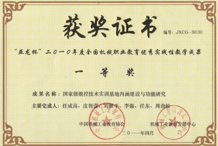 国家级数控技术实训基地内涵建设与研究 获“亚龙杯”全国职业教育成果一等奖 | |