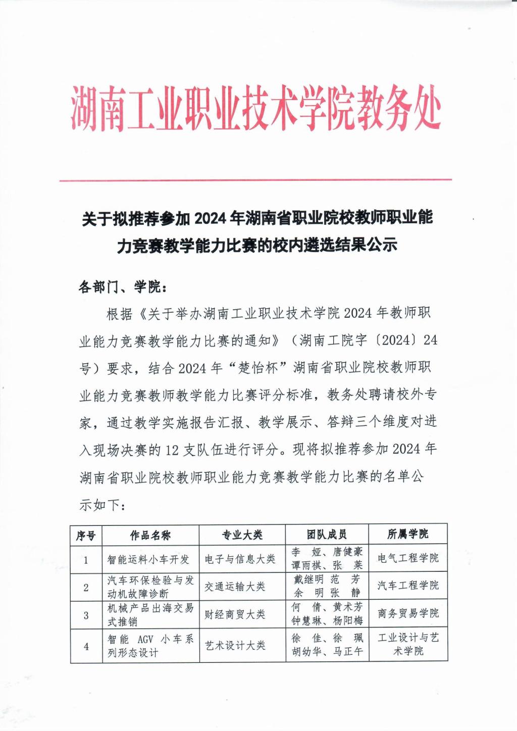 关于拟推荐参加 2024 年湖南省职业院校教师职业能力竞赛教学能力比赛的校内遴选结果公示