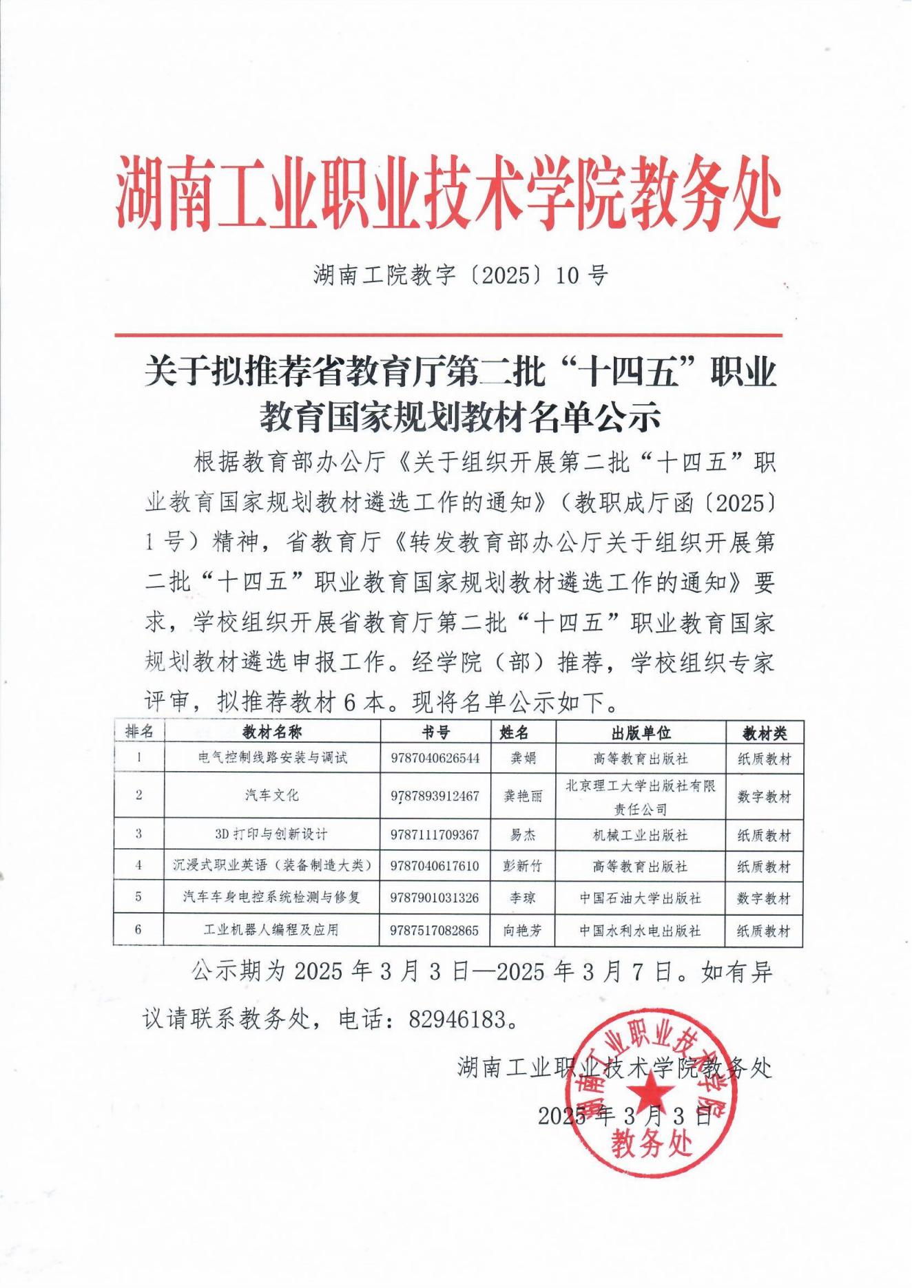 关于拟推荐省教育厅第二批“十四五”职业教育国家规划教材名单公示