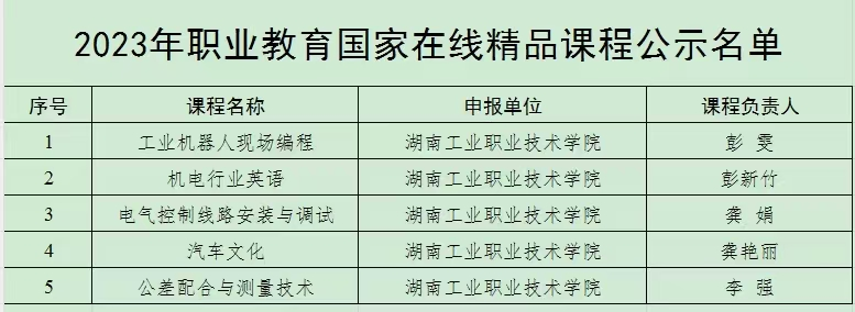 日前,教育部公示2023年职业教育国家在线精品课程遴选结果,我校《公差配合与测量技术》等5门课程被认定为2023年职业教育国家在线精品课程,入选数量位居湖南省同类院校首列。这是我校课程建设的新突破,为学校远大发展战略目标的实现奠定了坚实基础。