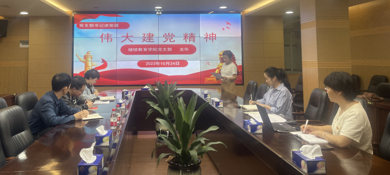 为庆祝中华人民共和国成立74周年,深入学习贯彻党的二十大精神,引导广大党员教师牢记为党育人、为国育才的初心使命。10月24日,继续教育学院党支部开展了“喜迎国庆忆党史 砥砺奋进向未来”主题党日活动。党支部书记龙华同志主持活动,继续教育学院党支部全体党员、入党积极分子参加了活动。