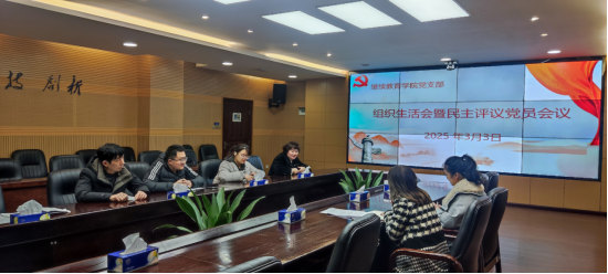 3月3日继续教育学院党支部在行政楼第二会议室隆重举行了组织生活会和民主评议党员会议。会议由党支部书记龙华主持,全体党员参加。