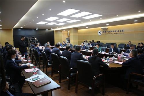 座谈会上,我校党委书记刘建湘从“构建紧密对接湖南装备制造产业发展的办学格局、打造主动服务湖南经济社会发展的人才培养基地、探索校企深度融合创新发展职业教育的湖工样板、开展发挥职业教育优势服务国家战略的有益实践”四个方面汇报了学校办学特色与成绩以及下一步办好高水平高职学校和专业群的打算。刘建湘表示,学校将以习近平新时代中国特色社会主义思想为指导,坚定不移地服务国家战略和经济社会发展,植根湖南装备制造优势产业办学,走政产学研用一体化道路,进一步解放思想、深耕细作、励精图治,推进产教融合、校企合作,深化复合型技术技能人才培养模式改革,着力提高发展质量,培育德技并修的时代工匠,为推进制造强省和制造强国战略做出新的更大的贡献。