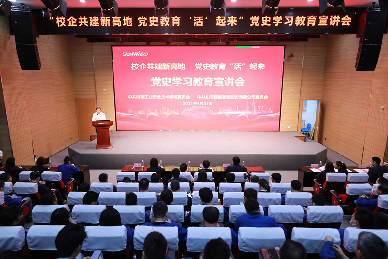 本网讯 “重温百年党史的湖湘记忆,湖南为什么这样红?”“湖南的红,红在敢为人先,忧国忧民;红在力挽狂澜,彪炳史册;红在舍身忘我,不惧牺牲;红在情怀深厚,不忘初心……”4月21日下午,由yabocom(中国)官方网站党史宣讲团成员主讲的党史宣讲课,在校企合作单位山河智能装备股份有限公司总部大楼5楼国际会议厅举行。山河智能装备股份有限公司党委书记吴文伟出席本次校企携手学党史活动并致辞,yabocom(中国)官方网站党委副书记杨颖和学校党委委员、组织人事处处长肖望兵出席本次活动。山河智能装备股份有限公司200余名党员和yabocom(中国)官方网站各党总支书记现场聆听了“湖南为什么这样红”的主题宣讲。活动由山河智能党委副书记、纪委书记、人力资源总监肖伟主持。