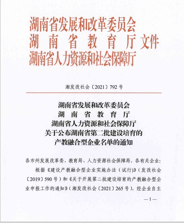 近期,湖南省发展和改革委员会、省教育厅、省人力资源和社会保障厅联合公布了湖南省第二批建设培育的产教融合型企业名单。经企业自主申报、专家评审和省发展改革委、省教育厅、省人力资源和社会保障厅等三部门联审,机械行业高铁装备制造职业教育产教联盟理事长单位中车株洲电力机车有限公司以及理事单位株洲市沃尔新材料有限责任公司、株洲长河电力机车科技有限公司等六家成员单位成功入选。