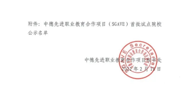 本网讯 为深入贯彻落实习近平总书记对职业教育工作的重要指示和全国职业教育大会精神,深化产教融合、校企合作,深入推进育人方式、办学模式、管理体制、保障机制改革,借鉴“双元制”办学模式,推动建设具有国际先进水平的中国特色职业教育体系,按照《国家职业教育改革实施方案》《教育部等八部门关于加快和扩大新时代教育对外开放的意见》等文件精神,教育部与德国等欧洲职业教育模式先进国家行业龙头企业联合实施中德先进职业教育合作项目(Sino-German Advanced Vocational Education,简称SGAVE项目),yabocom(中国)官方网站(新能源汽车技术专业)入选“中德先进职业教育合作项目首批试点院校”。