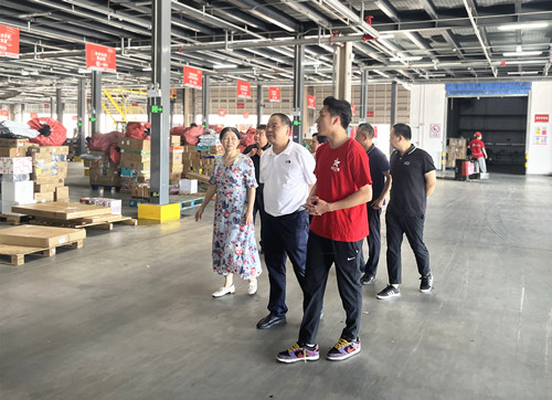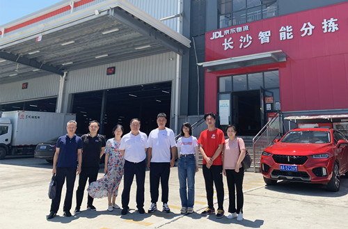 刘建湘一行参观了京邦达在湖南区域刚建成投产的京东“亚洲一号”综合分拣中心,边参观边了解“亚洲一号”分拣流程,同时了解了京东物流优势领域、主营业务、组织架构、技术改革及人员培训等情况。