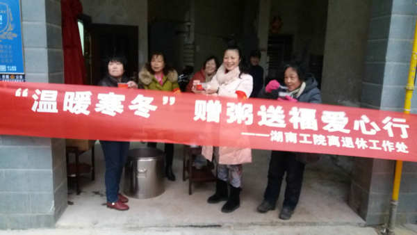 1月24日是农历十二月初八,俗称腊八节。我校离退休工作处联合牛婆塘社区、斑马塘社区、康怡养老开展了暖心赠粥送福活动,活动在靳江明珠小区和雨花小区同时进行,赠粥的对象是我校离退休教职工和小区业主。